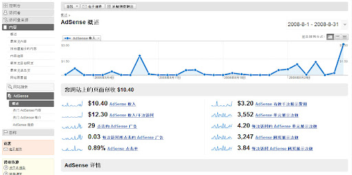 把谷歌分析帐户加入 AdSense 帐户,您就可以获得您网站上的用户行为的高级报告。除了谷歌分析工具现有的报告,如独立用户访问量、用户语言等,现在您的报告还可以把 AdSenes 广告效果根据网页、浏览来源等参数进行细分。利用这些数据,您就可以更好地了解网站用户的使用习惯,进而对广告设置进行调整,提高广告收入。
