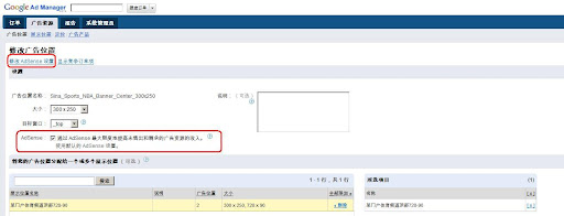 如果希望在某一个广告位上启用 Google AdSense 广告进行补余,作为充分而且必要条件,我们必须在系统中为这个广告位启用“AdSense 补余”选项。下面我向大家介绍一下如何启用和修改 AdSense 选项。